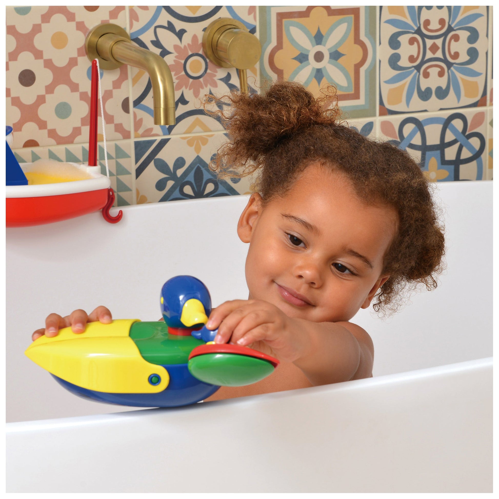 Three little ducklings hide inside Mother duck. The happy family swims together to delight a child at bath time. Awarded 'Recommended' status by the Good Toy Guide. Length 18cm